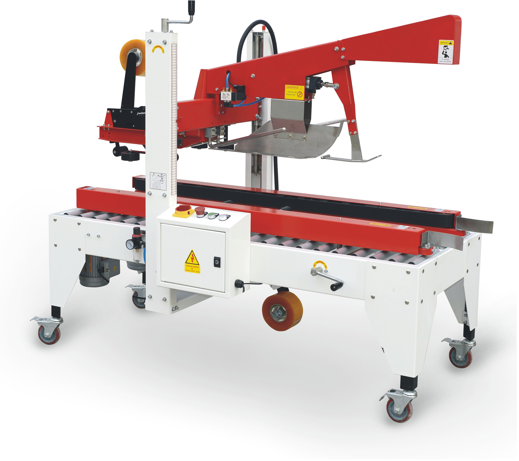 自动折纸箱上盖,上下自动贴上胶带,采用即贴胶带纸箱封口,封箱效果平整、规范、美观,无需人手作业。